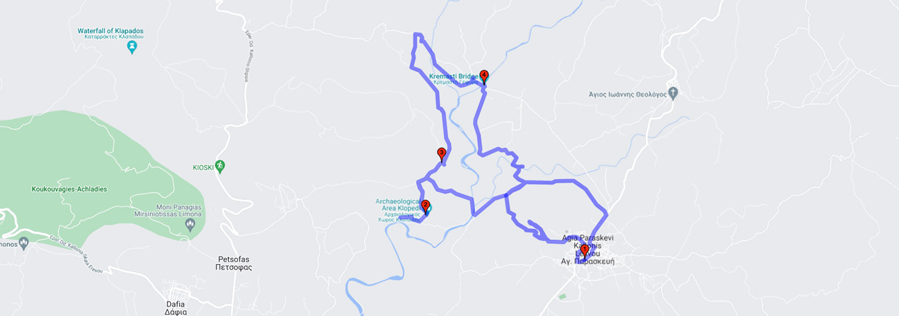 Αγία Παρασκευή - Ιερό Κλοπεδής - Μετόχι Ταξιαρχών - Γεφύρι Κρεμαστής - Στιβωτά - Αγία Παρασκευή