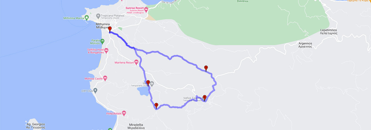 Molyvos - Limnodeksameni - Mixes - Vafios - Agios Ioannis - Molyvos