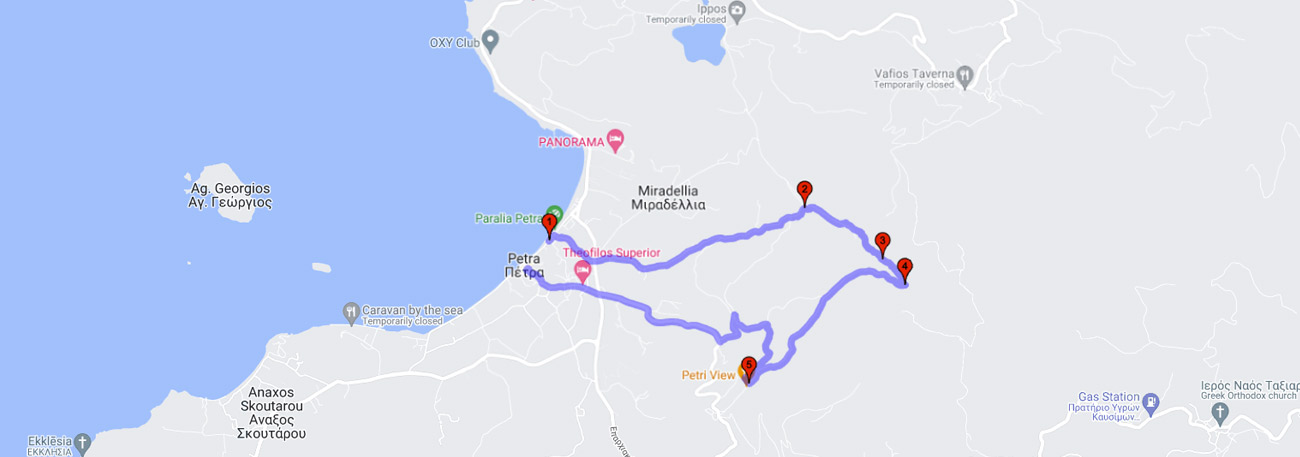 Petra - Agia Fotini - Ydromyloi - Pigi Ligona - Monastirelia - Petri - Achilliopigada - Petra