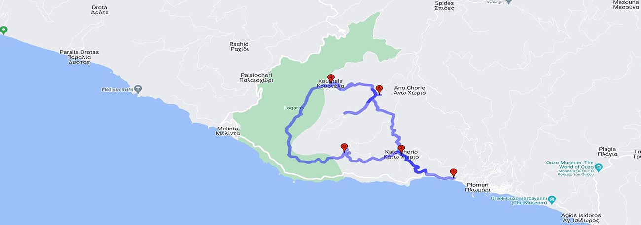 Plomari - Kato Chorio - Levra - Logaras - Kournela - Agatheri - Kato Chorio – Plomari